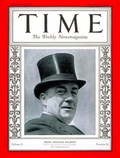 Baldwin, na capa da Time em 1927: “Poder sem responsabilidade é prerrogativa, ao longo dos tempos, das meretrizes”